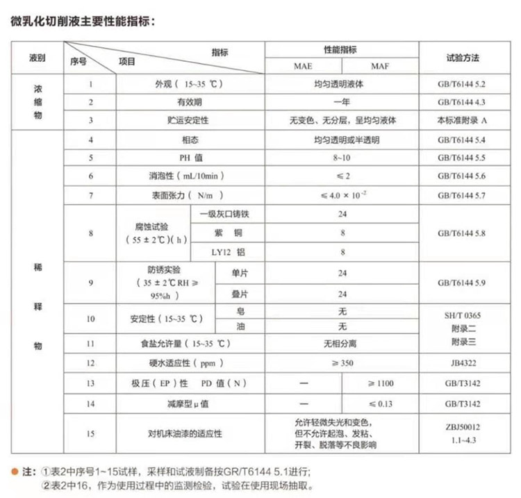 三、微乳型切削液的技术标准